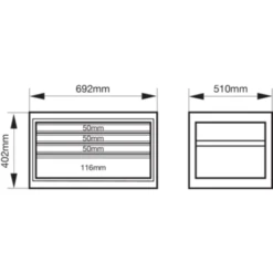 - Fully opening 30kg capacity drawers equipped with ball-bearing sliders for smooth opening